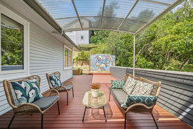Here's your chance to live in one of Wellington's loveliest, leafiest city-fringe suburbs, in a double-glazed four-bedroom character home with easy-care wraparound decking on two sides to make the most of the sunny aspect. Complete with '50s charm, it's tucked away off a quiet cul-de-sac, set amid birdsong just metres from the bus stop. Features include: